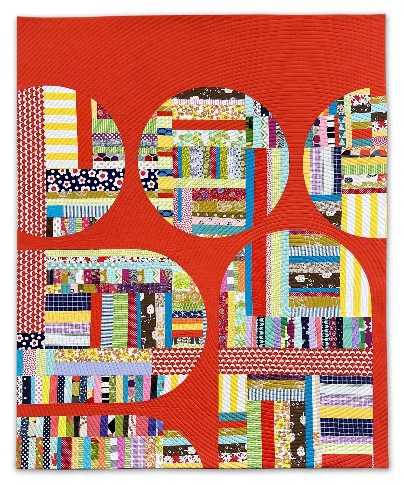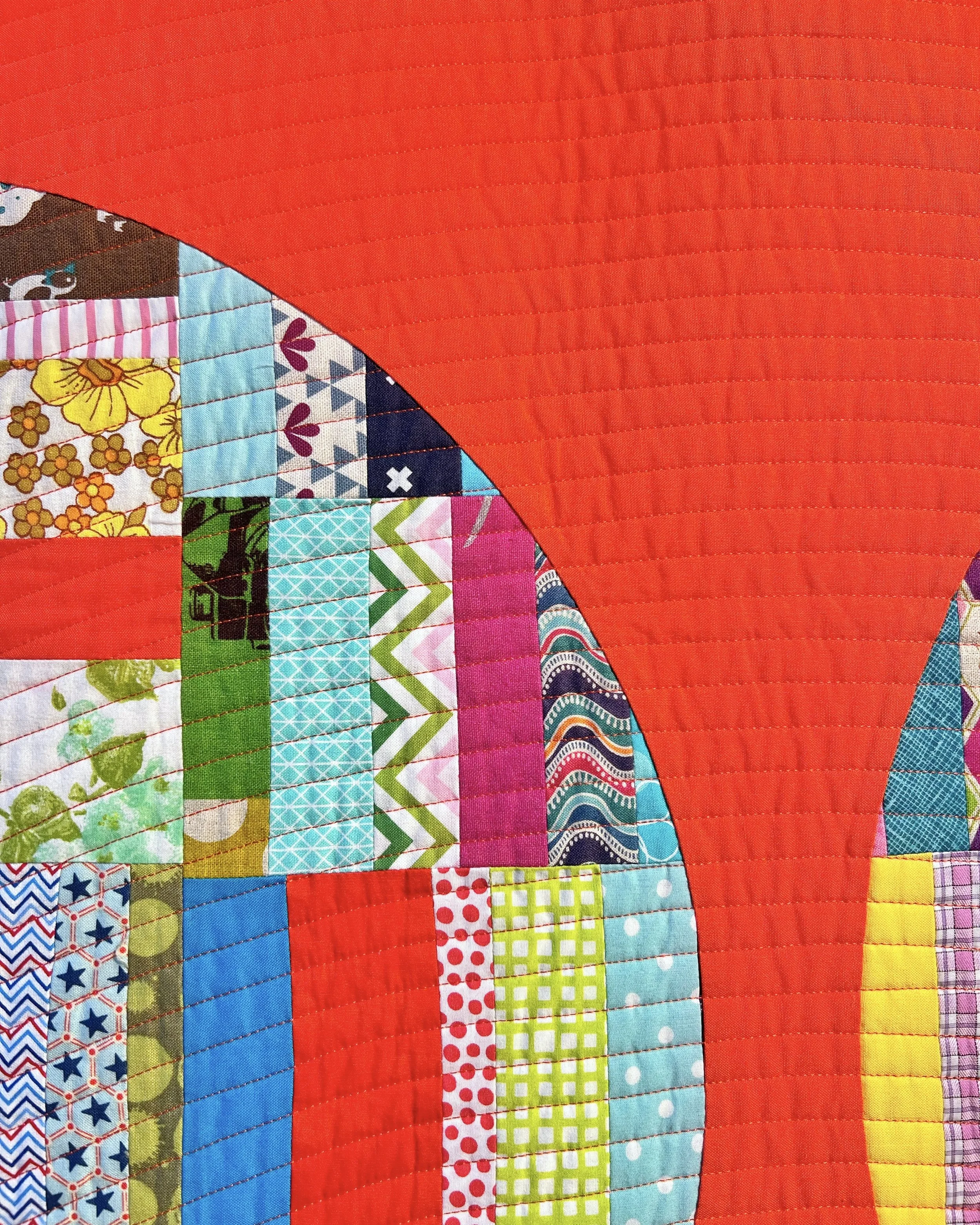 Oversized shapes that provide clean lines echoed with the quilting. A mix of machine piecing, hand and a little bit of raw edge appliqué.